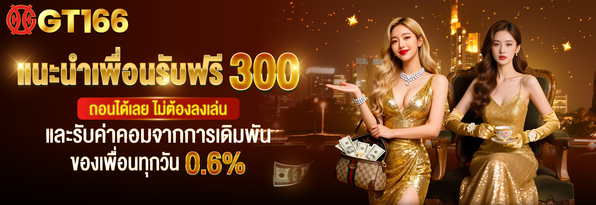 เมื่อสมัครสมาชิกใหม่กับ GT166 คุณจะได้รับโบนัสพิเศษ 100% จากยอดฝากแรกของคุณ เช่น ถ้าฝากเงิน 1,000 บาท จะได้รับโบนัสเพิ่มอีก 1,000 บาท รวมเป็นเงินที่สามารถเล่นได้ถึง 2,000 บาทเลยทีเดียว ยิ่งไปกว่านั้น เงื่อนไขการทำเทิร์นของ GT166 ยังถือว่าไม่ยากเกินไป ทำให้มีโอกาสถอนเงินได้ง่ายกว่าเว็บอื่นๆ